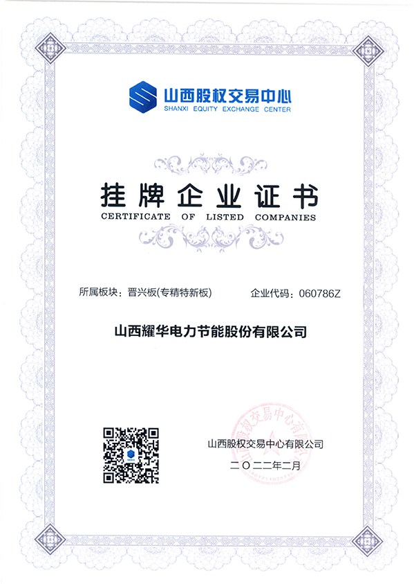 山西耀華電力節(jié)能股份有限公司是國內(nèi)第一家提出谷期電集中儲能蓄能的高新技術企業(yè),其主營業(yè)務:電力市場購售電交易運營、電力設施安裝檢測運維、 低谷電采暖設備的研發(fā)、生產(chǎn)、安裝、銷售及運行服務于一體。公司成立于1996年,落座于山西省太原市,現(xiàn)有股權(quán)代碼在晉興板上市的專精特新企業(yè),中國建設科技自主創(chuàng)新優(yōu)勢企業(yè),山西省節(jié)能協(xié)會理事單位,擁有自主知識產(chǎn)權(quán),獲得國家多項專利,參編了電采暖國家標準(JC/T60008-2021)和主編了山西省地方標準(DBJ04/T291-2012)。擁有國家發(fā)明專利11項,軟件著作權(quán)6項。其中“大數(shù)據(jù)遠程集中監(jiān)控運維服務平臺”早在2019年就在河北、天津、山西等多個煤改電地區(qū)投入試用,節(jié)能效果非常顯著,運維方便快捷,用戶滿意。